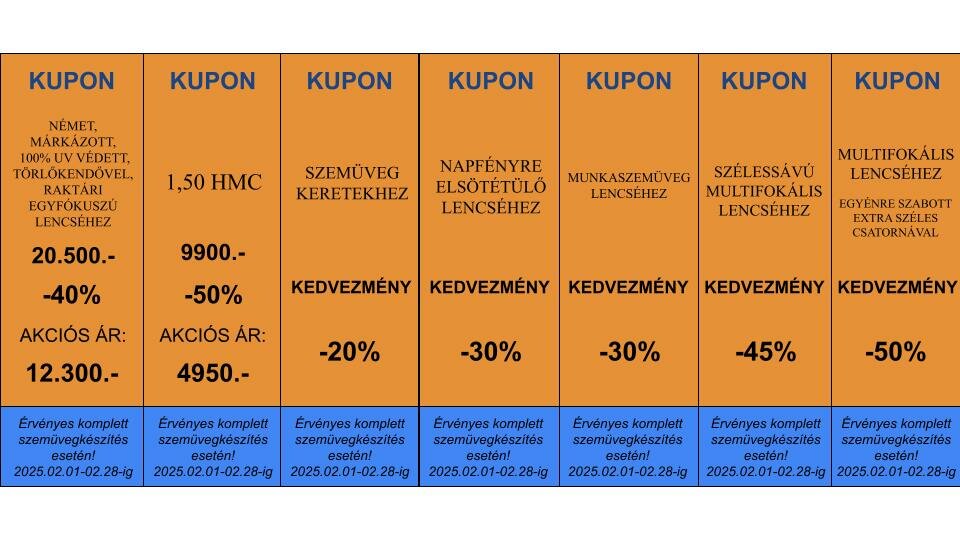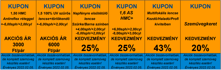Kuponjaink komplett szemüveg vásárlás esetén érvényesek és ebben az esetben összevonhatóak!