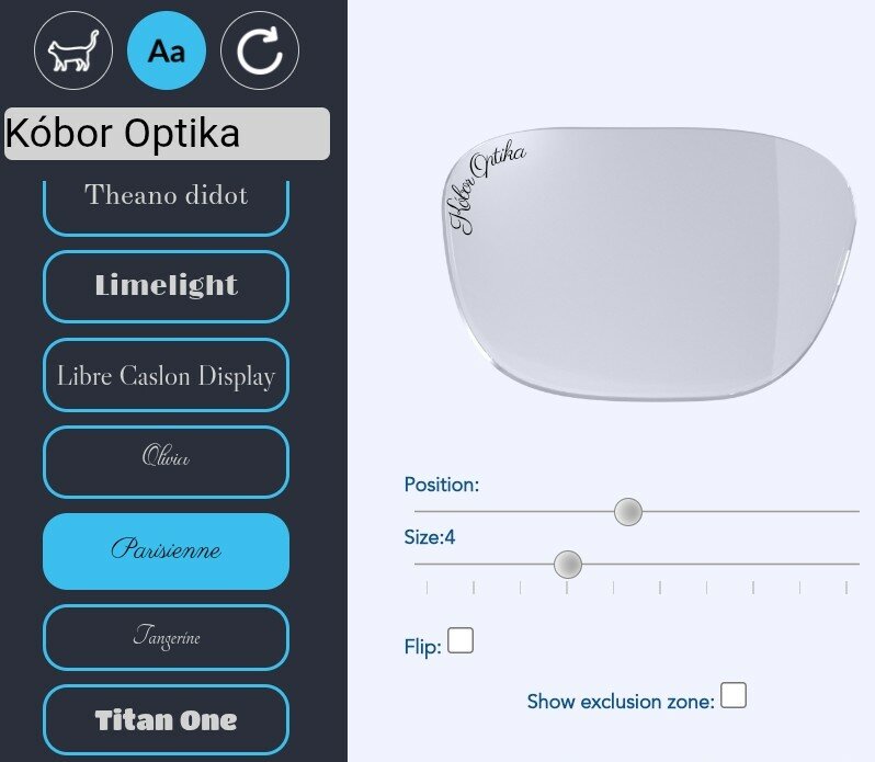 még bőséges listából gravírjelet is lehet kérni a lencsék szélére, akár a saját monogrammot is! Ezen felül a gép készíti a lencse csiszolásakor az egyéni napelőtétet is!