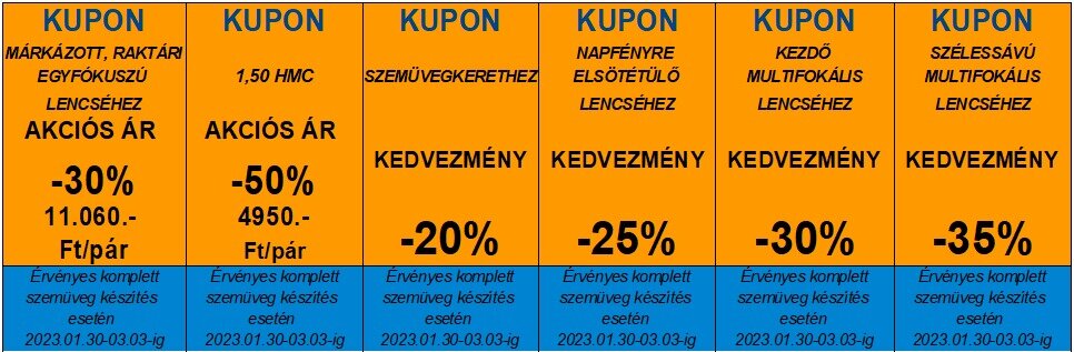 Kuponjaink komplett szemüveg vásárlás esetén érvényesek és ebben az esetben összevonhatóak!